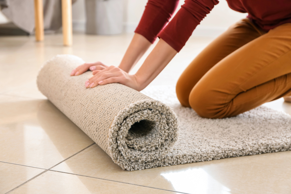 - Position the carpet in the room, leaving the extra edges for trimming.